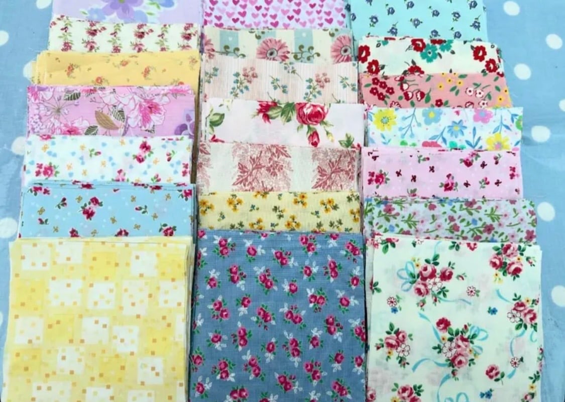 A gorgeous selection of 40 cotton fabric squares measuring 12 cm x 12 cm ideal for quilting and patchwork.
