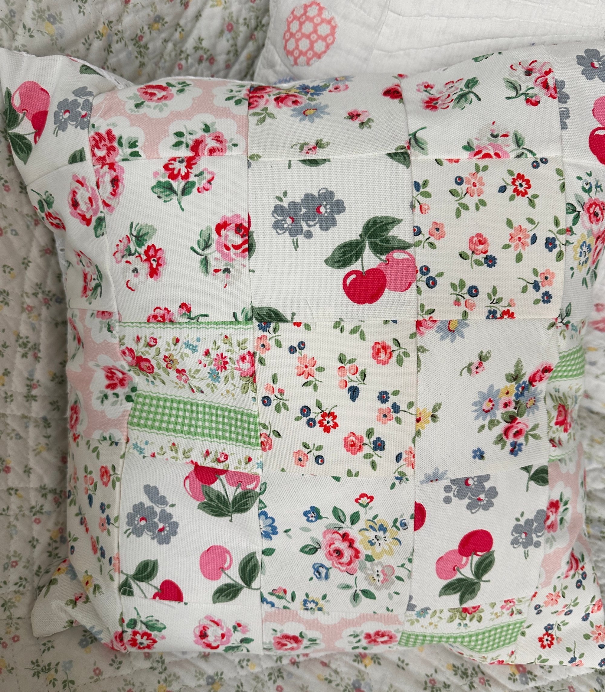 Gorgeous cushion measuring 40 cm x 40 cm.It has been made with a pretty selection of Cath kidston cotton fabrics for the front with a white cotton fabric back with an envelope opening.