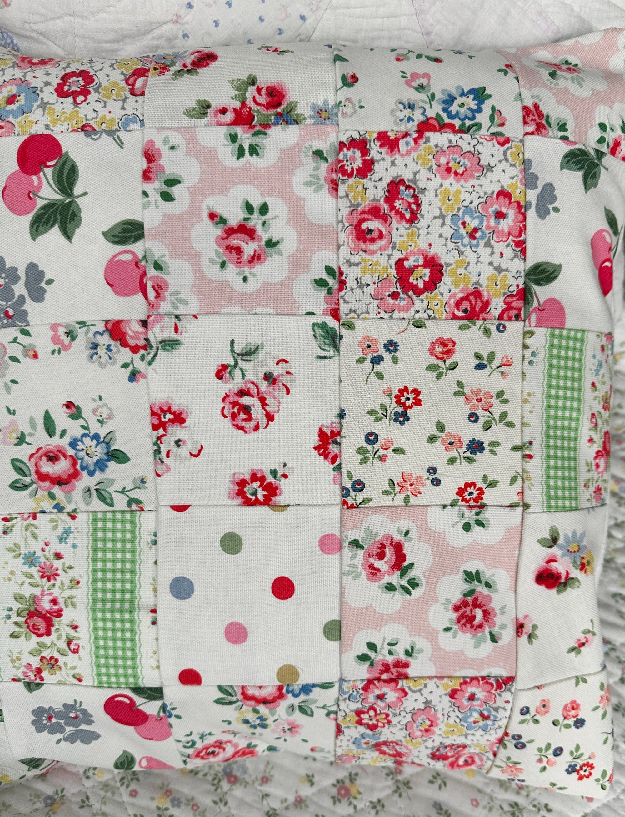 Gorgeous cushion measuring 40 cm x 40 cm.It has been made with a pretty selection of Cath kidston cotton fabrics for the front with a white cotton fabric back with an envelope opening.