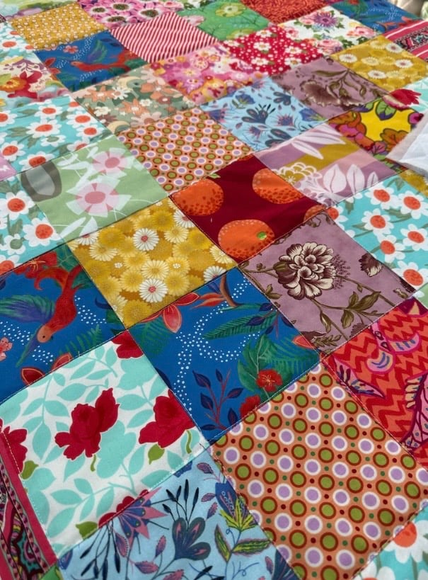 Gorgeous patchwork quilt measuring 100 cm x 100 cm.