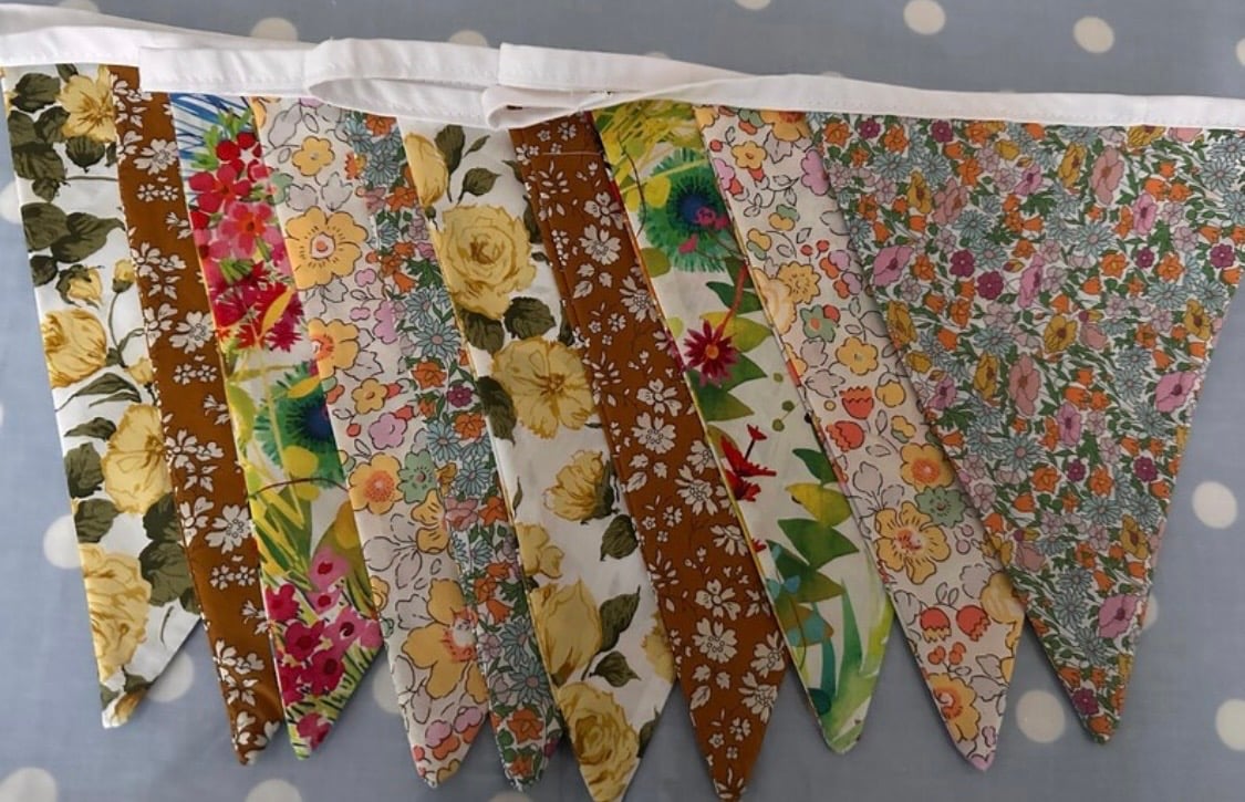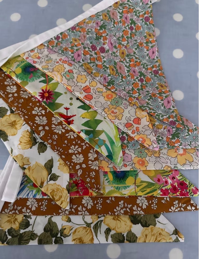 10 ft of gorgeous fabric bunting. Each of the flags are