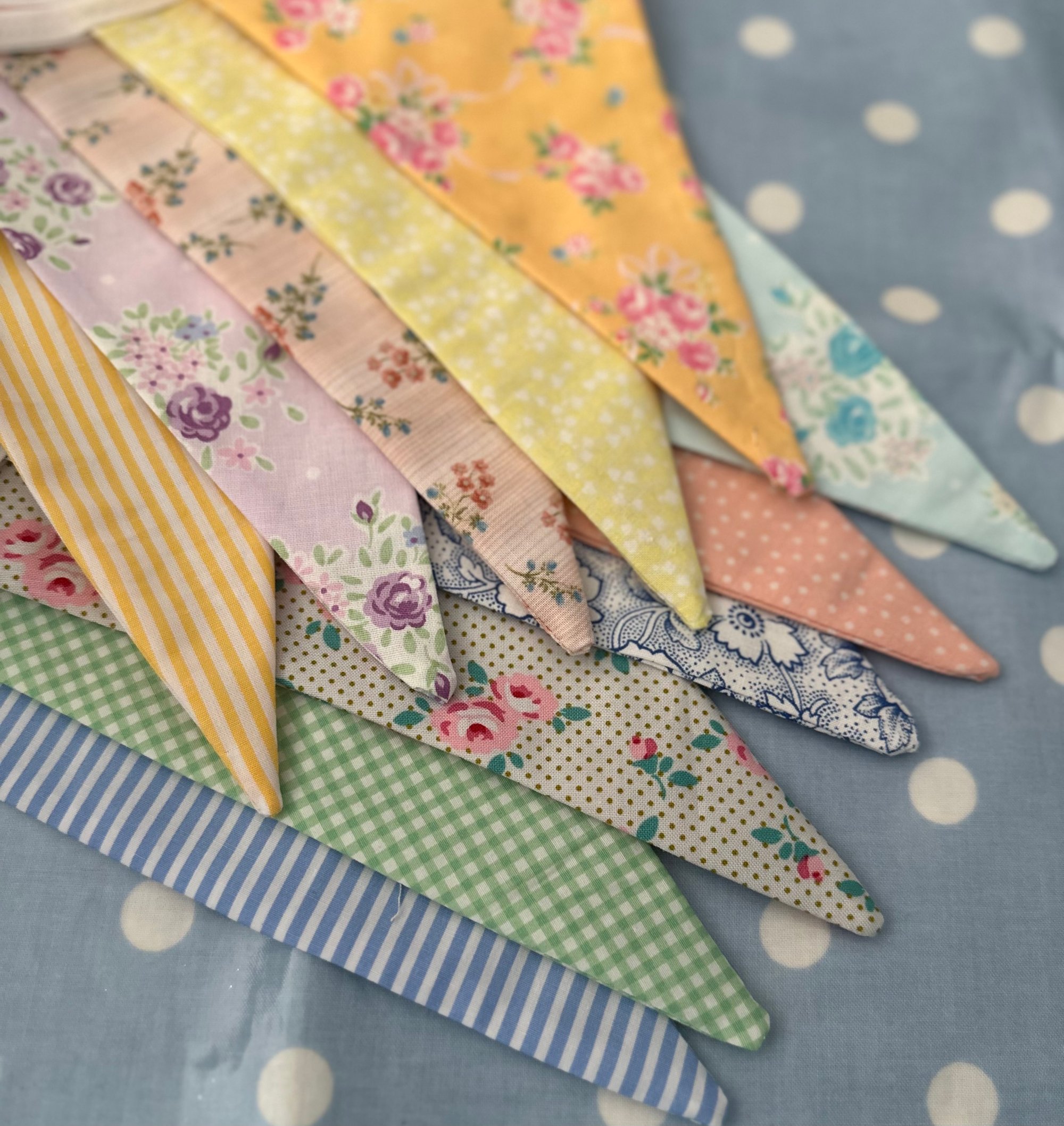 10 ft of gorgeous fabric bunting. Each of the flags are