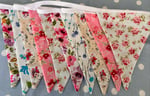 10 ft of bright and cheery bunting. Each flag is 18 cm wide, 20 cm tall, double sided then sewn into a white cotton fabric trim