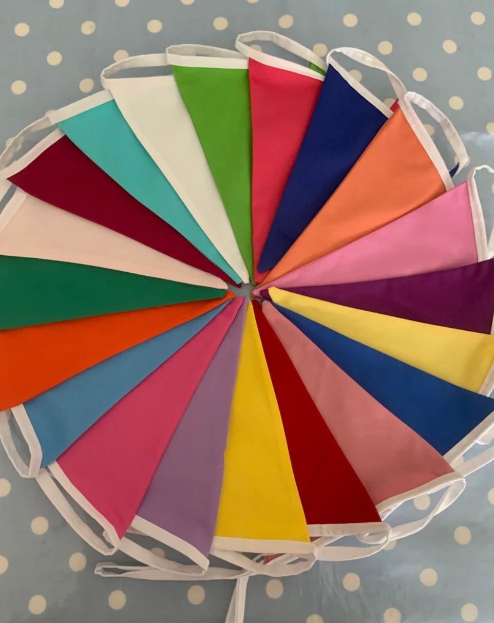 Our bright and cheery rainbow bunting is perfect for your event and comes in a variety of lengths.