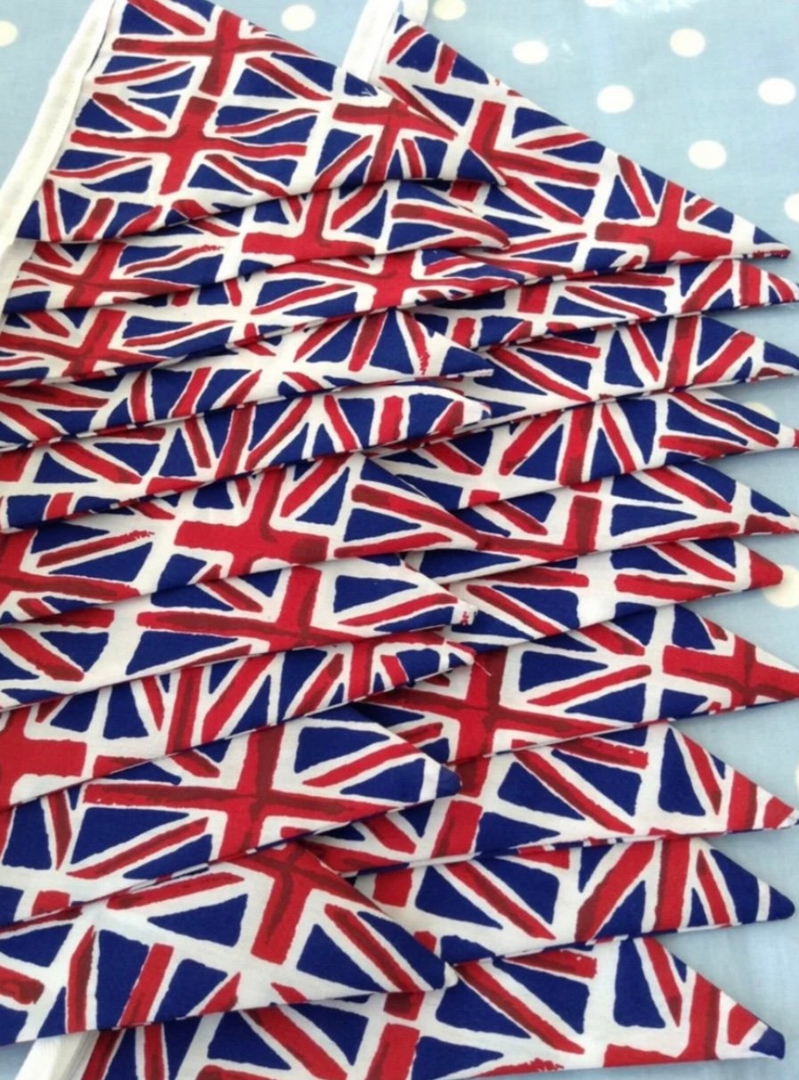 Our Union Jack bunting is perfect for your patriotic event and comes in a variety of lengths. Each flag measures 18 cm wide and 20 cm tall, double sided then sewn into a white cotton fabric trim.